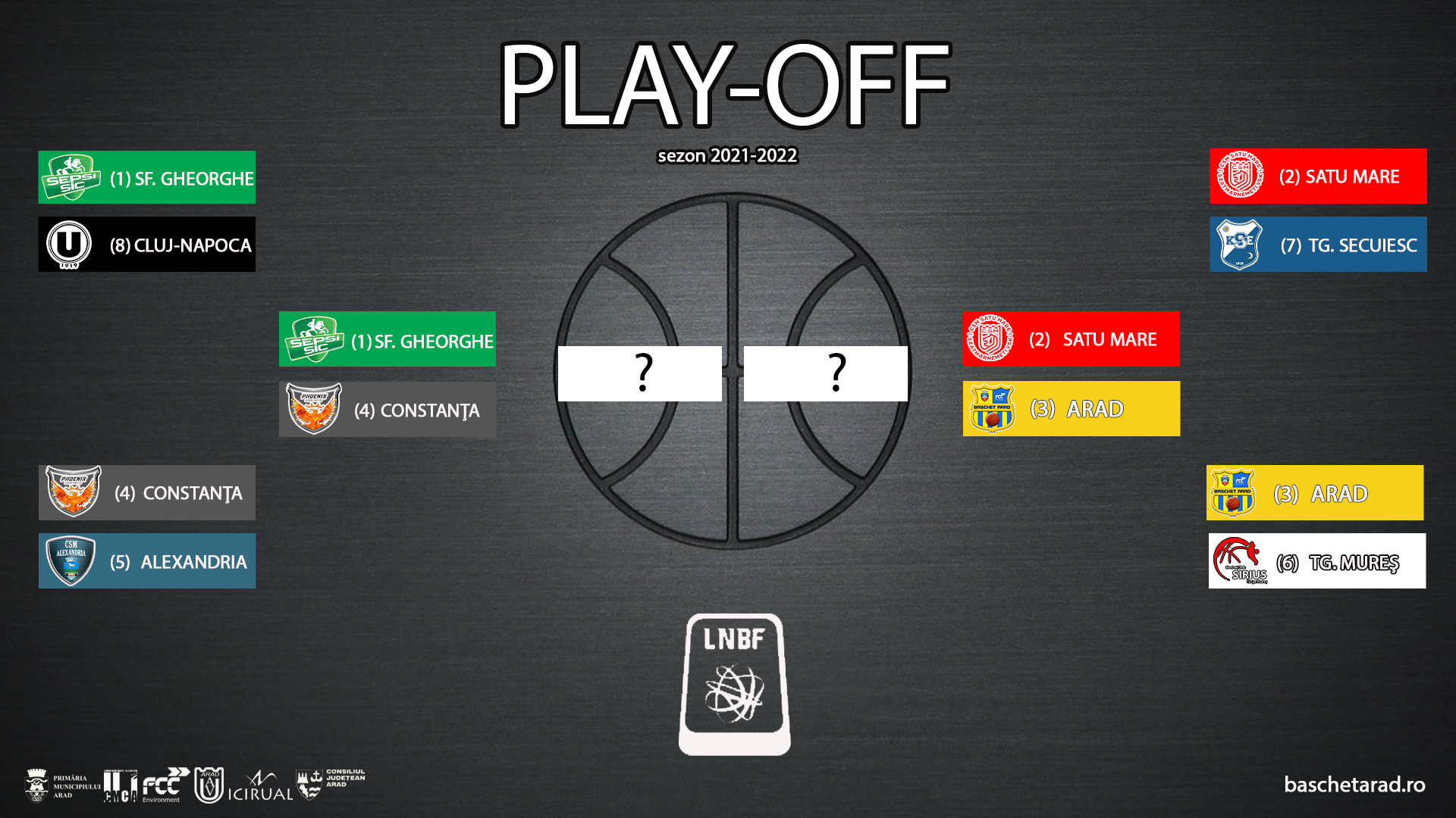 Lupta pentru un loc în marea finală va începe săptămâna viitoare, cu primele două jocuri pe terenul echipei mai bine clasate la finalul sezonului regular (7 şi 8 aprilie). Duelurile se vor disputa după sistemul "cel mai bun din cinci jocuri." FCC Baschet UAV Arad va întâlni vicecampioana din sezonul trecut, CSM Satu Mare.